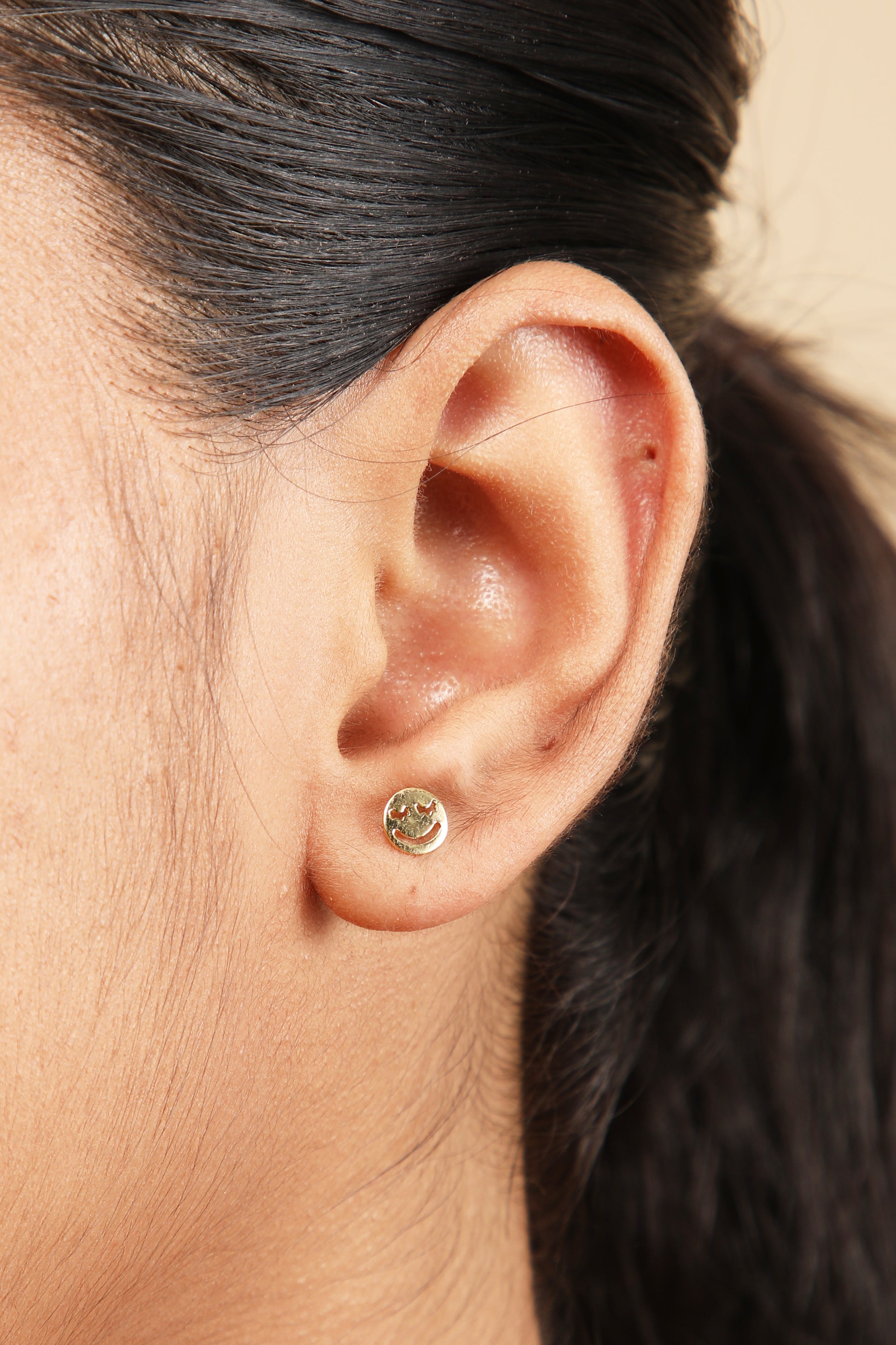 Styling Tip- Add whimsy to your look with the "Mini Golden Smiley" silver earring. Perfect as a second piercing or paired with minimalist studs for a playful, on-trend style.