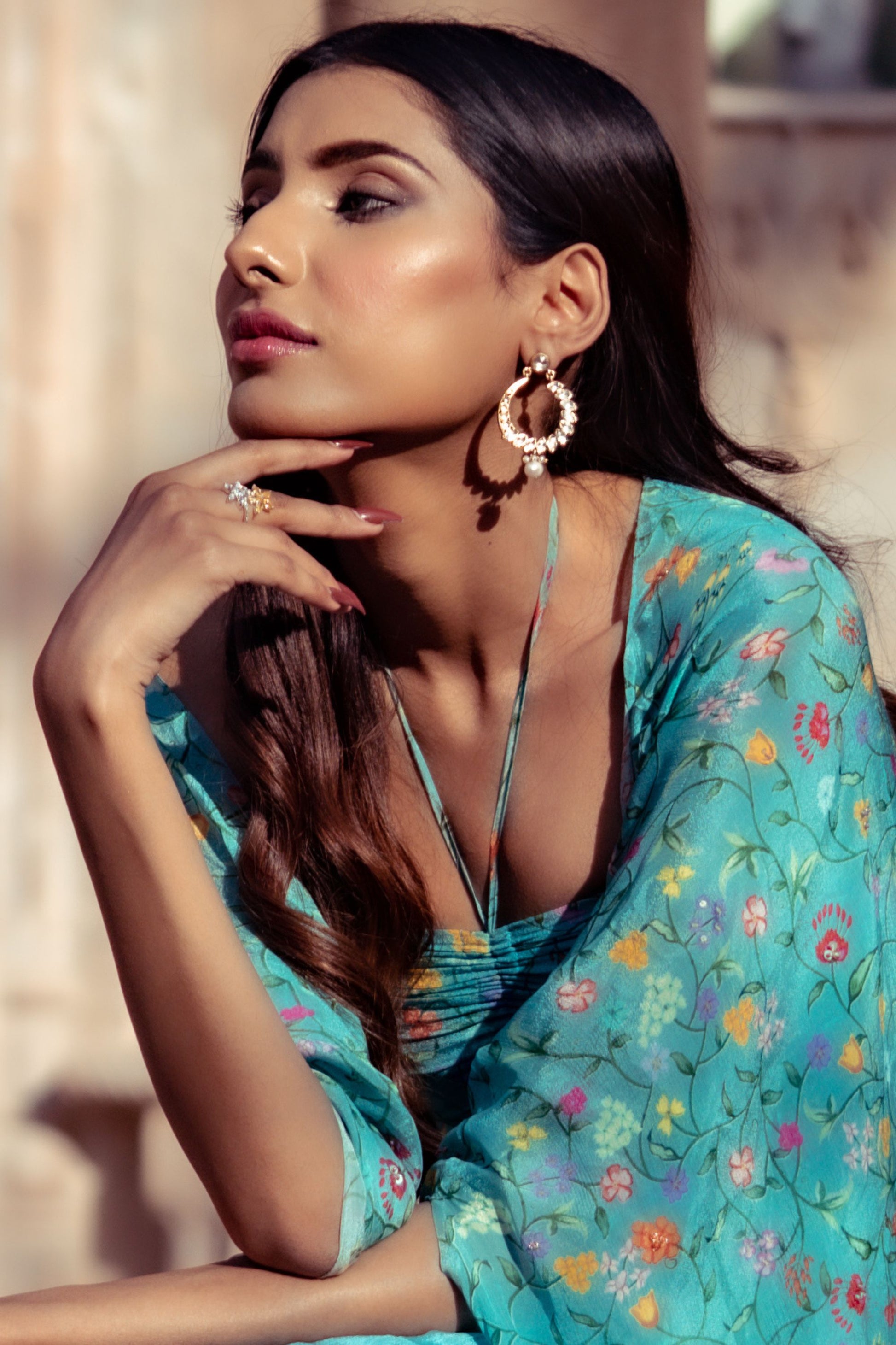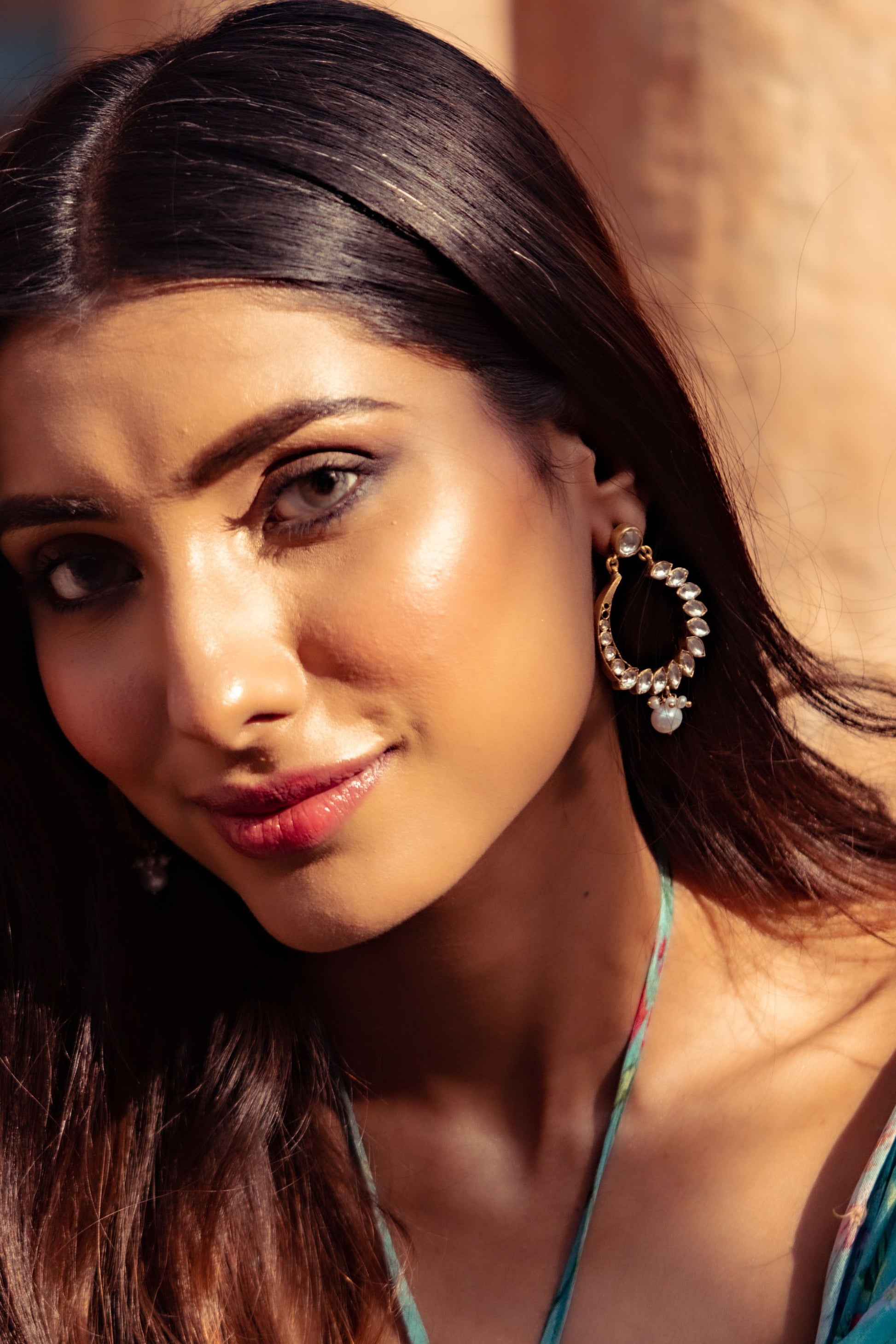 Styling Tip- Enhance your traditional Indian look with the Nitya Chandbali Earring. Pair it with a vibrant silk saree or an Anarkali suit to showcase the intricate detailing and elegant curves of the design. This one-of-a-kind, handmade earring is the perfect accessory to add a touch of sophistication and uniqueness to your outfit, making it ideal for special occasions and Indian festivities.