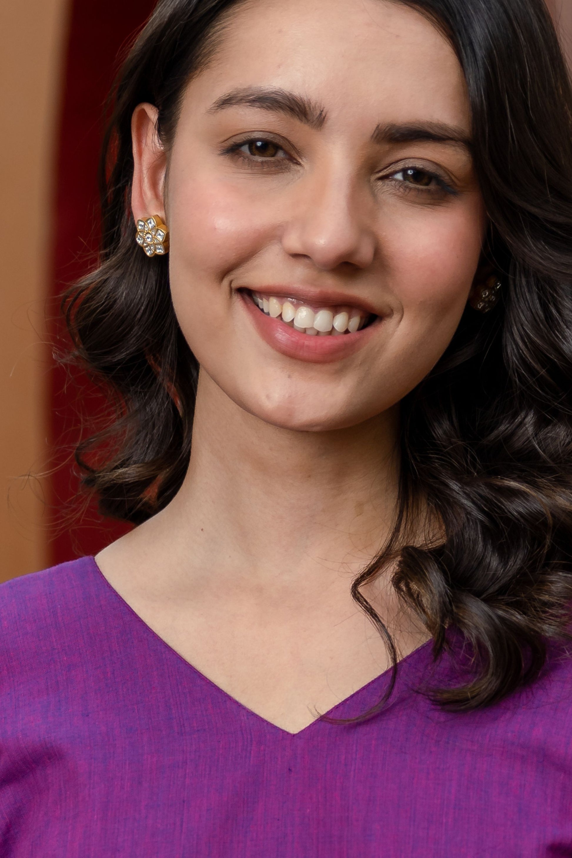 Styling Tip- Elevate your style with the Nyra Stud Earring. Pair it with a classic black dress or a simple white blouse to let the Kundan stones and the intricate flower design take center stage. This stunning piece of art, handcrafted with 925 sterling silver and anti-tarnish polish, adds a touch of elegance and makes a bold fashion statement, perfect for any occasion.