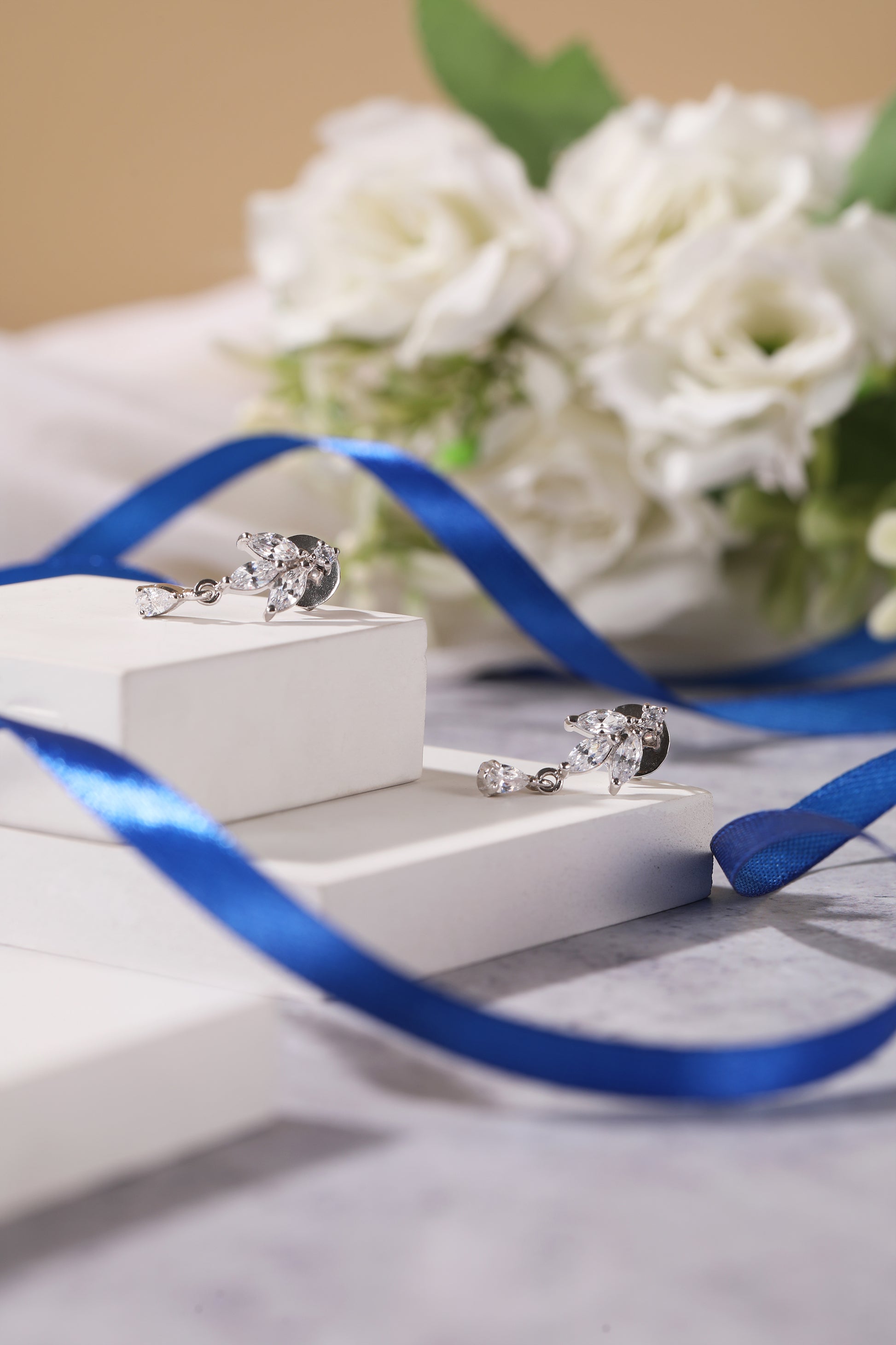 Olive leaves are a symbol of Love and Friendship, give a little push to your friendship with our Olive Love pendant set. It is a beautiful pendant that comes with a cute pair of earrings. Its design has a modern touch and traditional drama. It is made in 925 sterling silver and is studded with high-quality marquise and pear-shaped crystals.