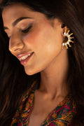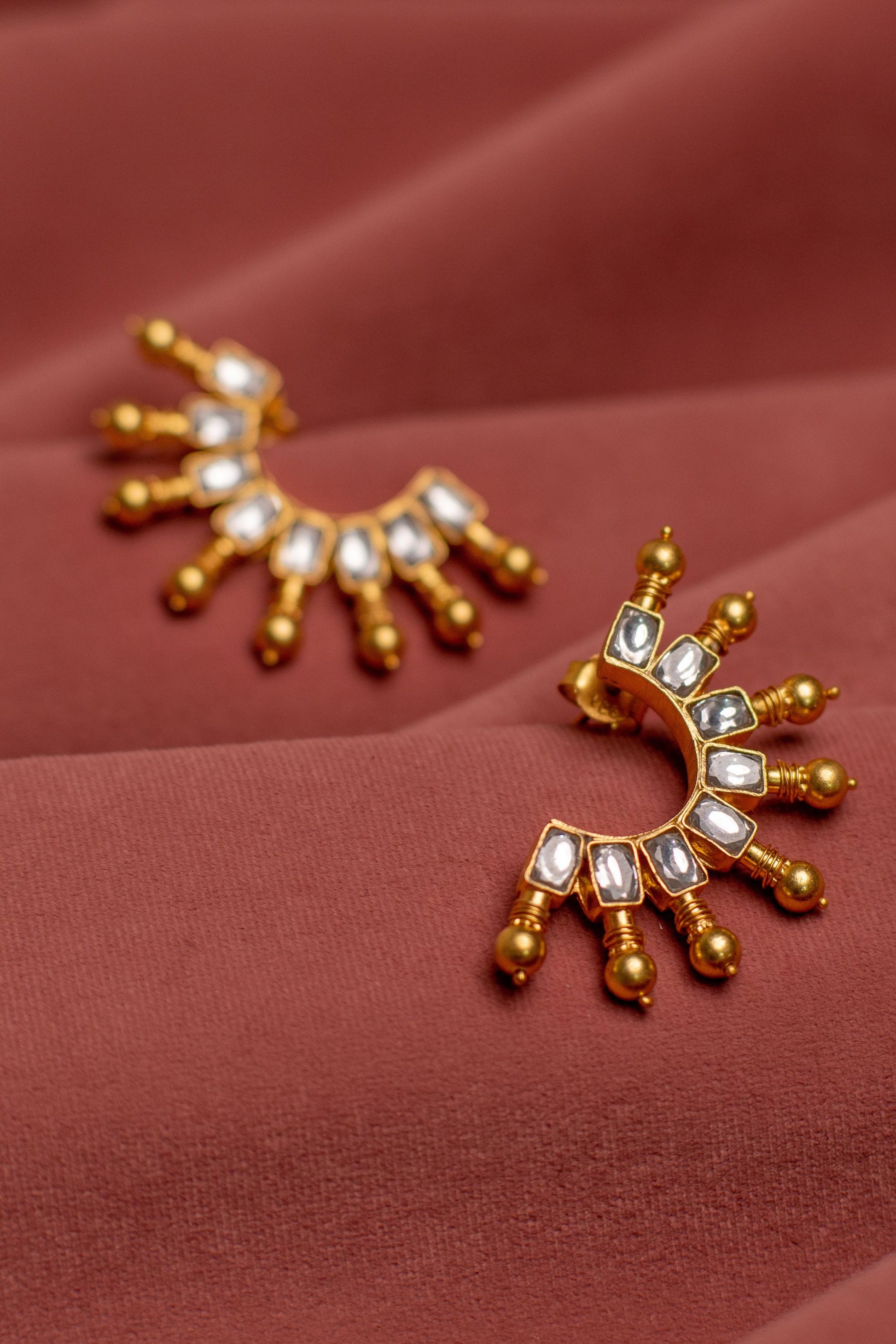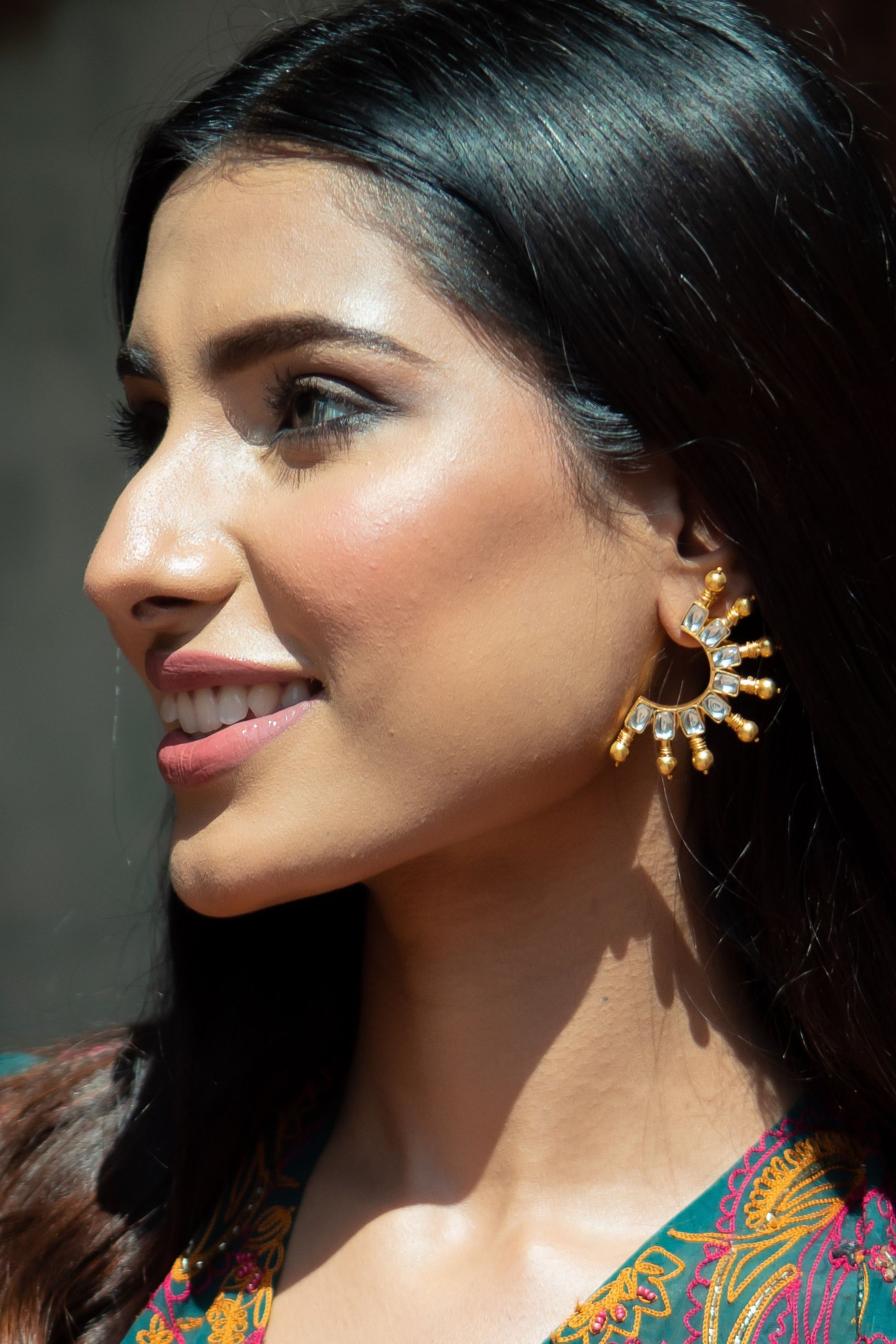 Styling Tip- Elevate your style with the Oorja Earring. Pair it with a sleek black dress or a classic white blouse to let the unique design take the spotlight. This one-of-a-kind work of art that adds sophistication and ensures lasting beauty. Whether it's a special occasion or a night out, these earrings will make a statement and turn heads.