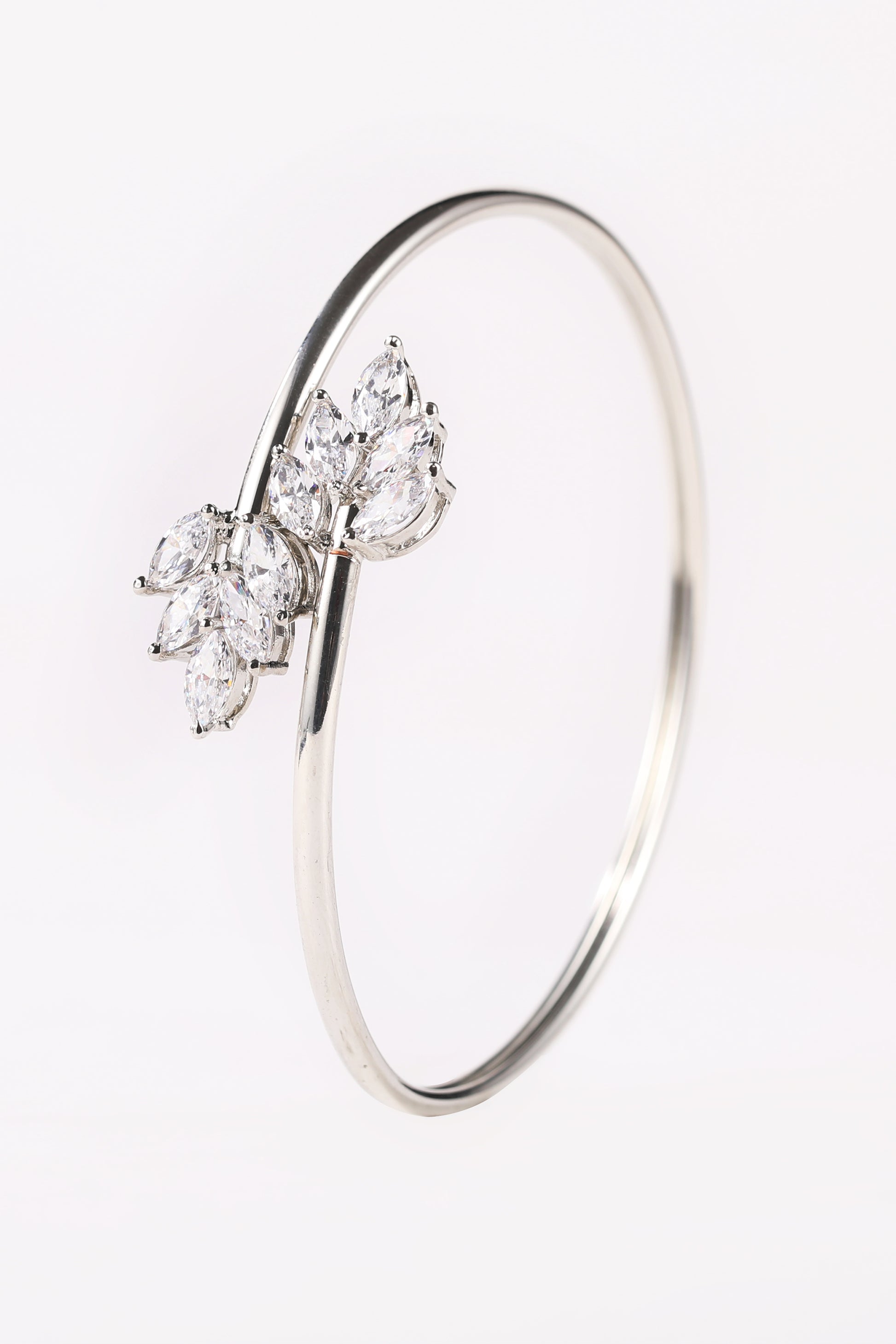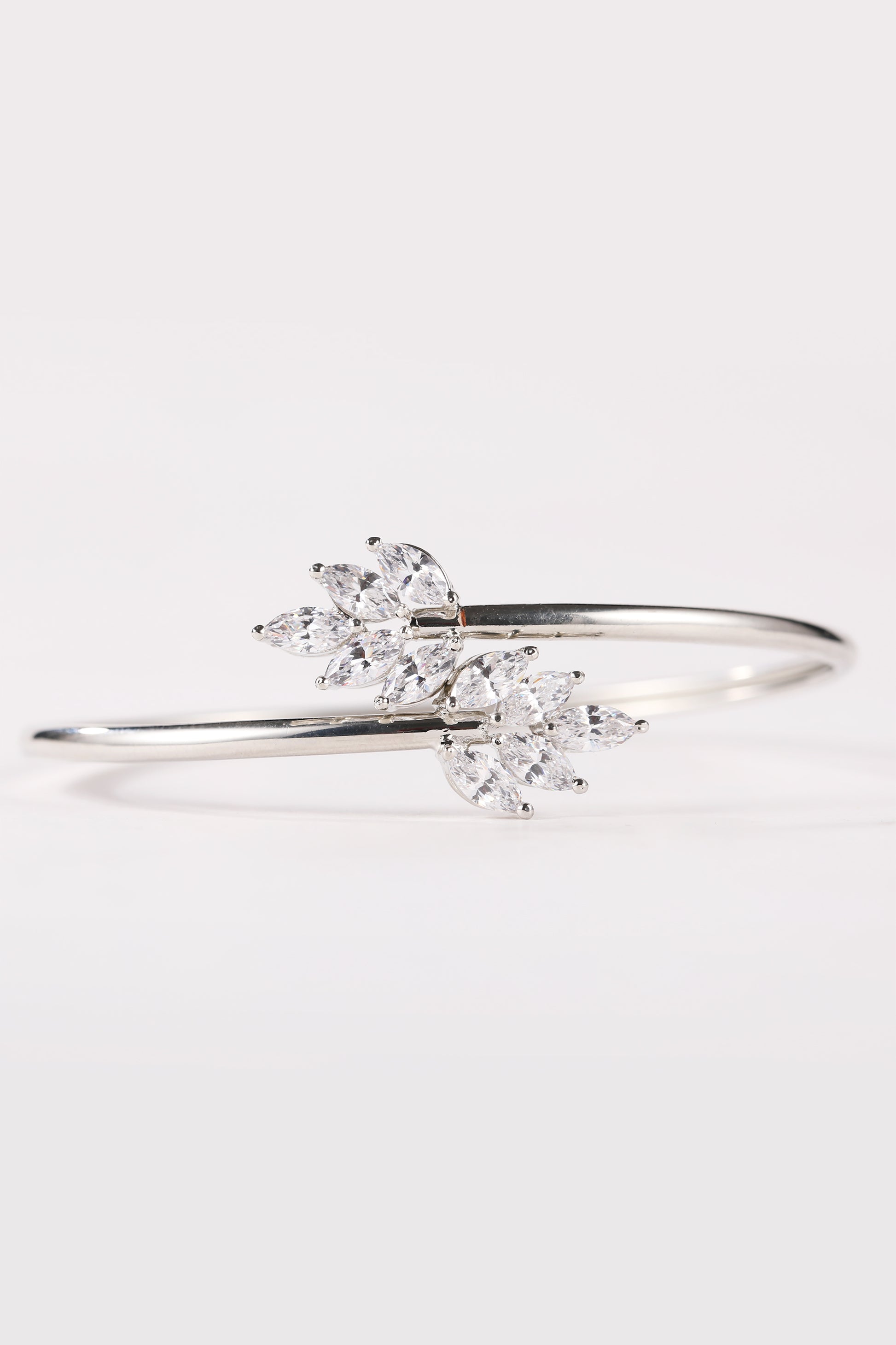 A combination of luxury, love, and strength, this orchid bracelet is a perfect fit for all beautiful ladies. A beautiful design, made in 925 sterling silver adds to the grace and charisma of your personality. The design of the bracelet uses high-quality marquise cut crystals to make an orchid leaf at each end of the bracelet.