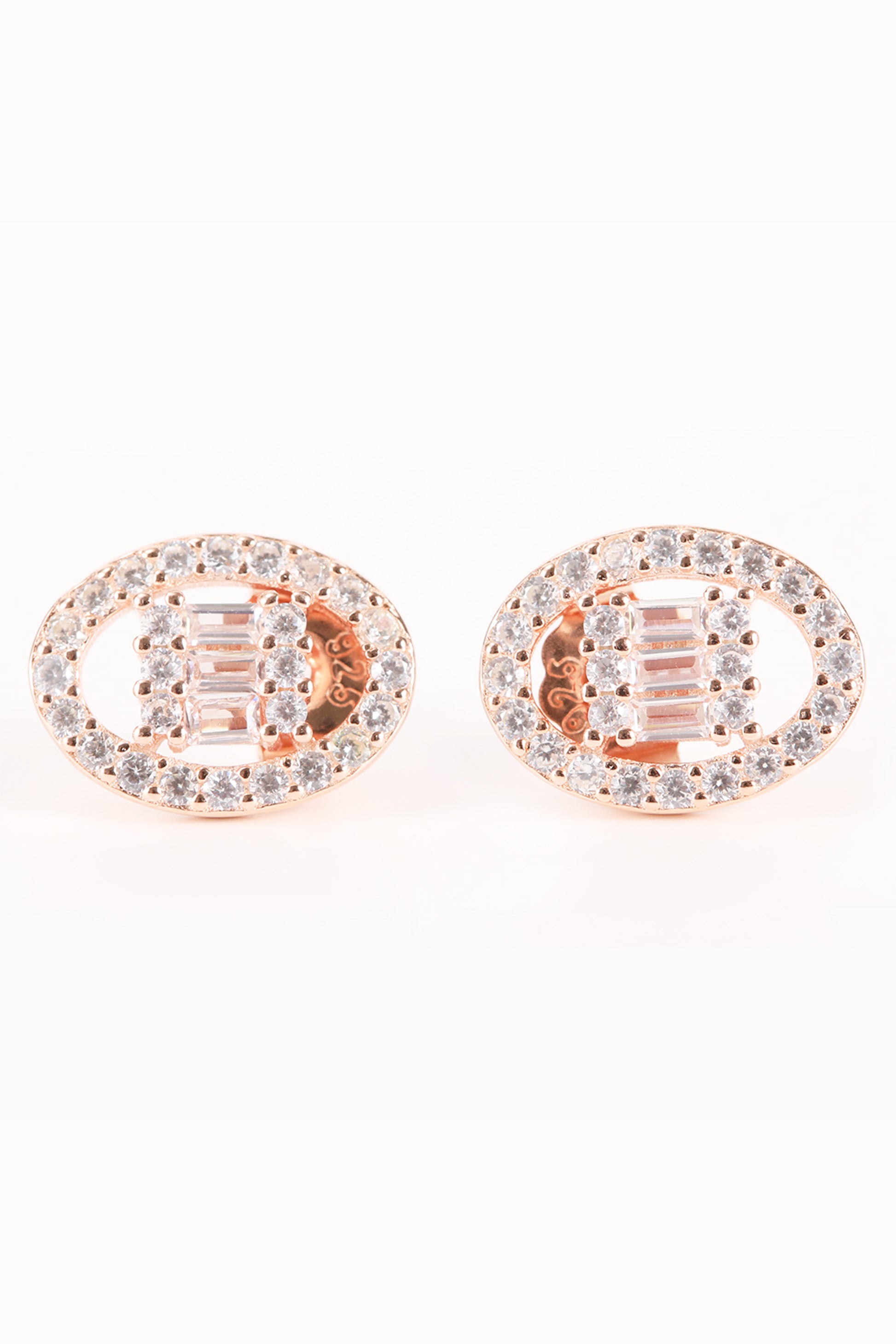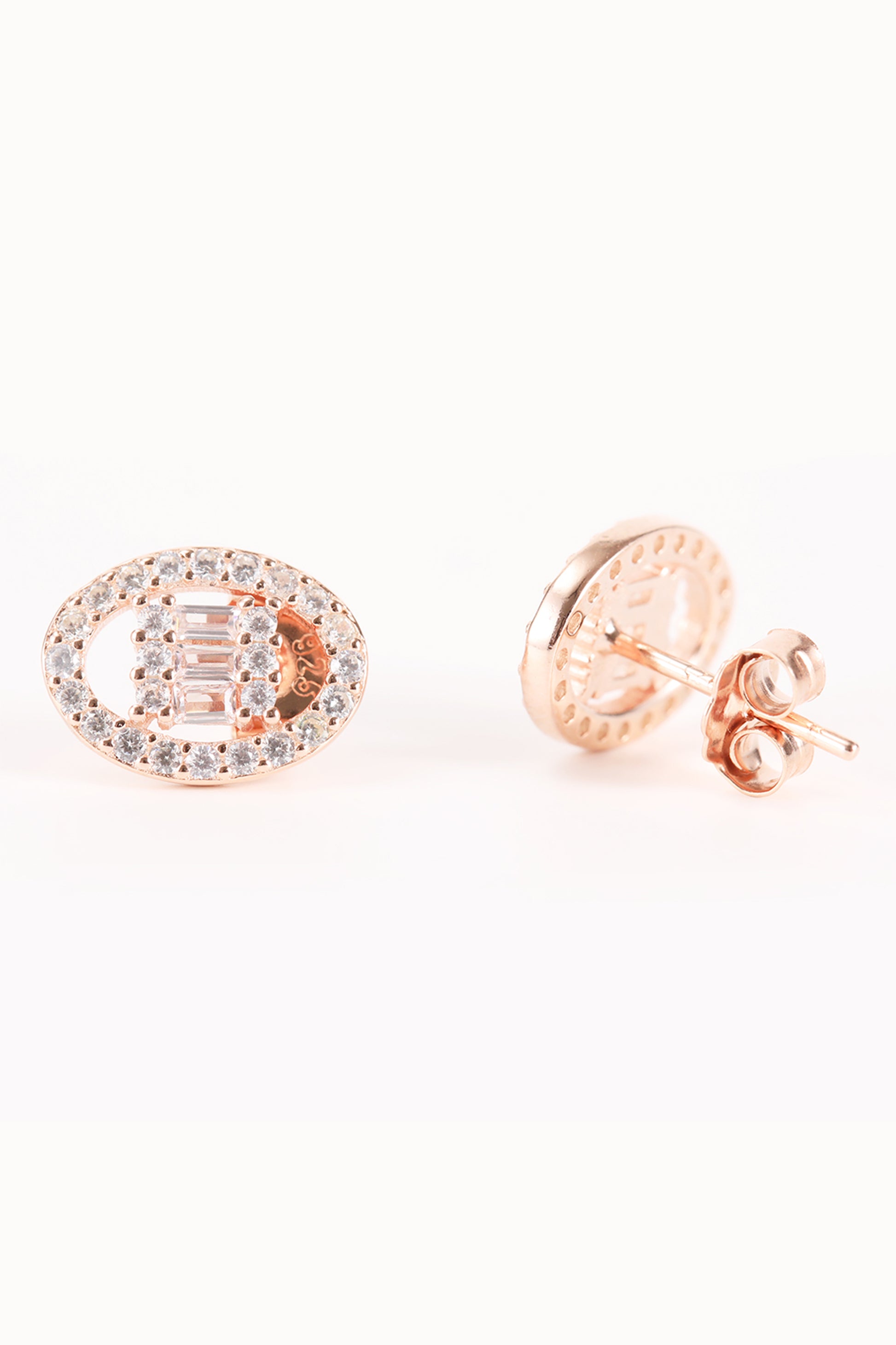 Elevate your style with these sterling silver oval stud earrings in elegant rose gold. A regal touch for any occasion, exuding sophistication and timeless beauty.