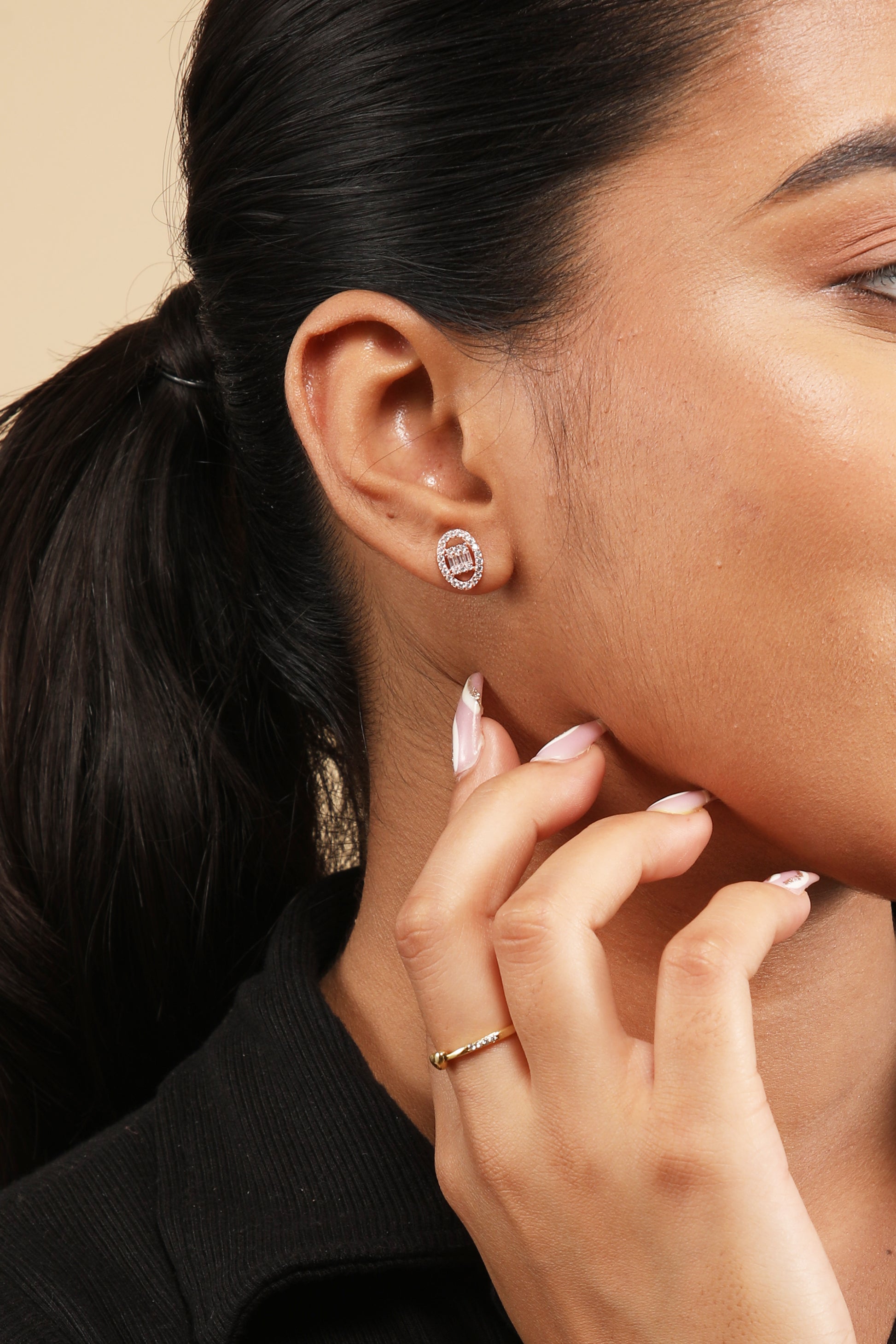 Styling Tip- Accentuate your elegance with oval rose gold stud earrings. Pair them effortlessly with a sophisticated evening gown or a chic office ensemble for timeless allure.