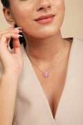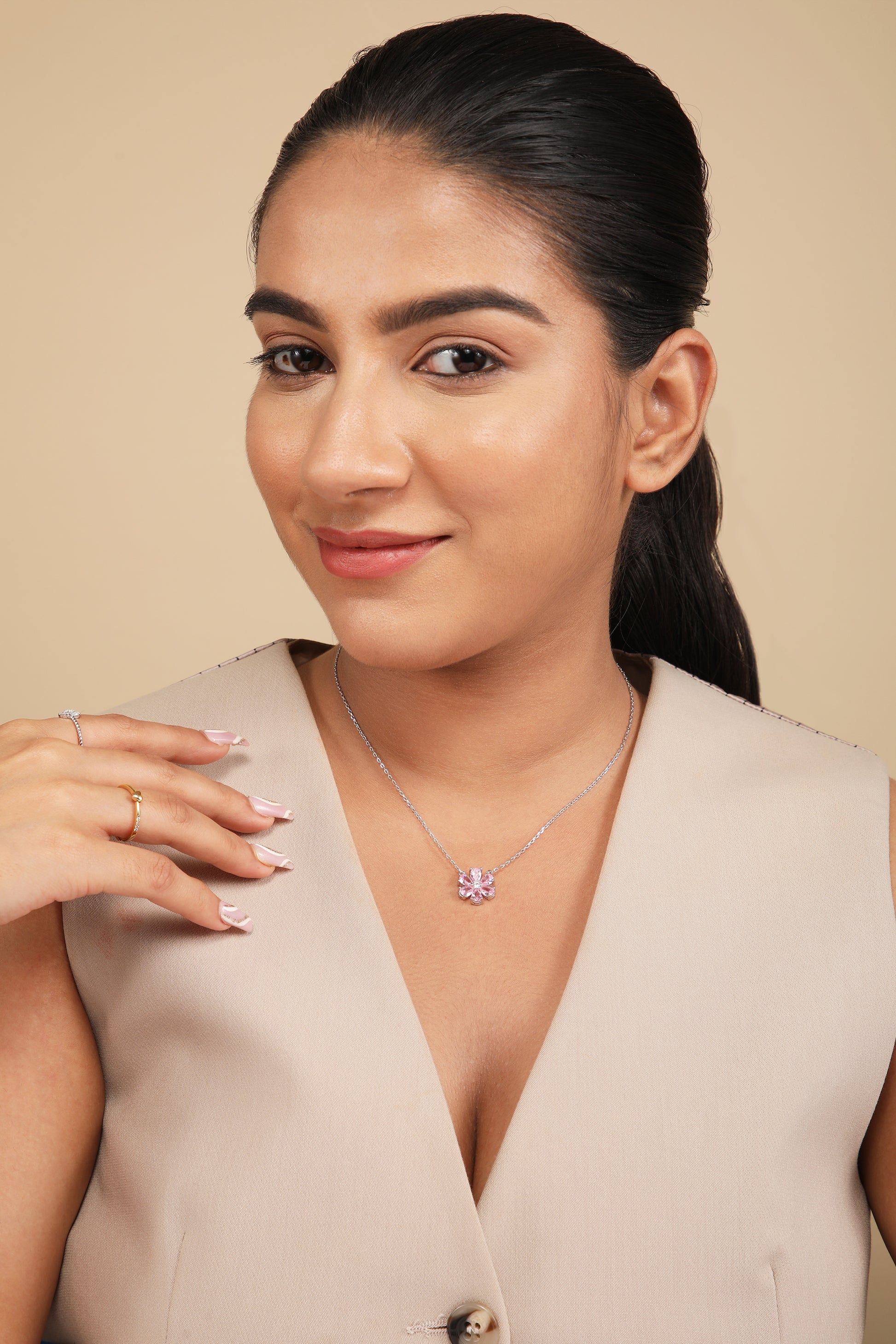 Styling Tip- Elevate your look effortlessly with the Posy Pink Pendant by pairing it with a simple neckline or an open-neck blouse to showcase its delicate charm and floral elegance.