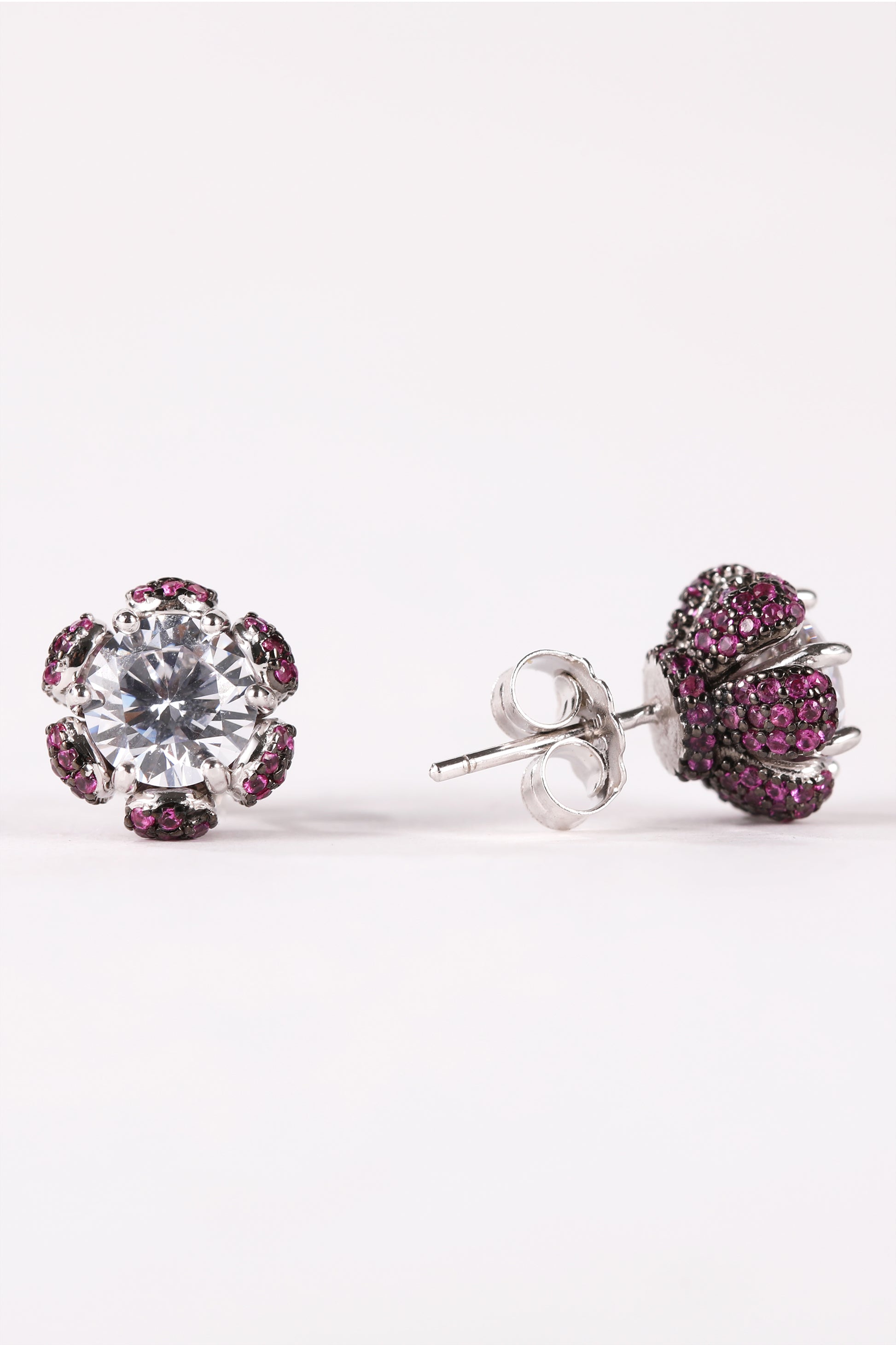 Styling Tip- Elevate your style with our 3D Floral Earrings. The purple hues and CZ center add a touch of sophistication. Ideal for both casual and formal looks, these 925 sterling silver earrings bloom effortlessly with charm.
