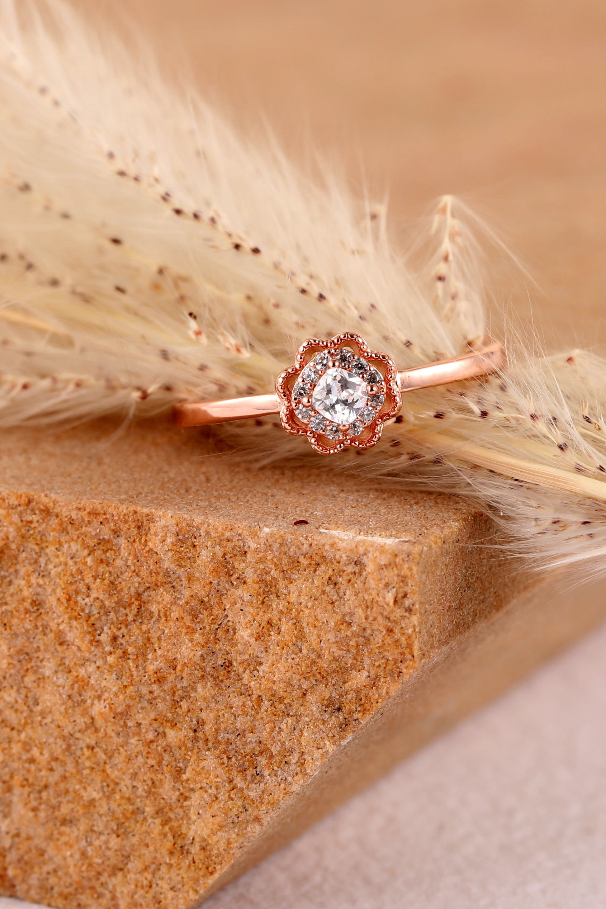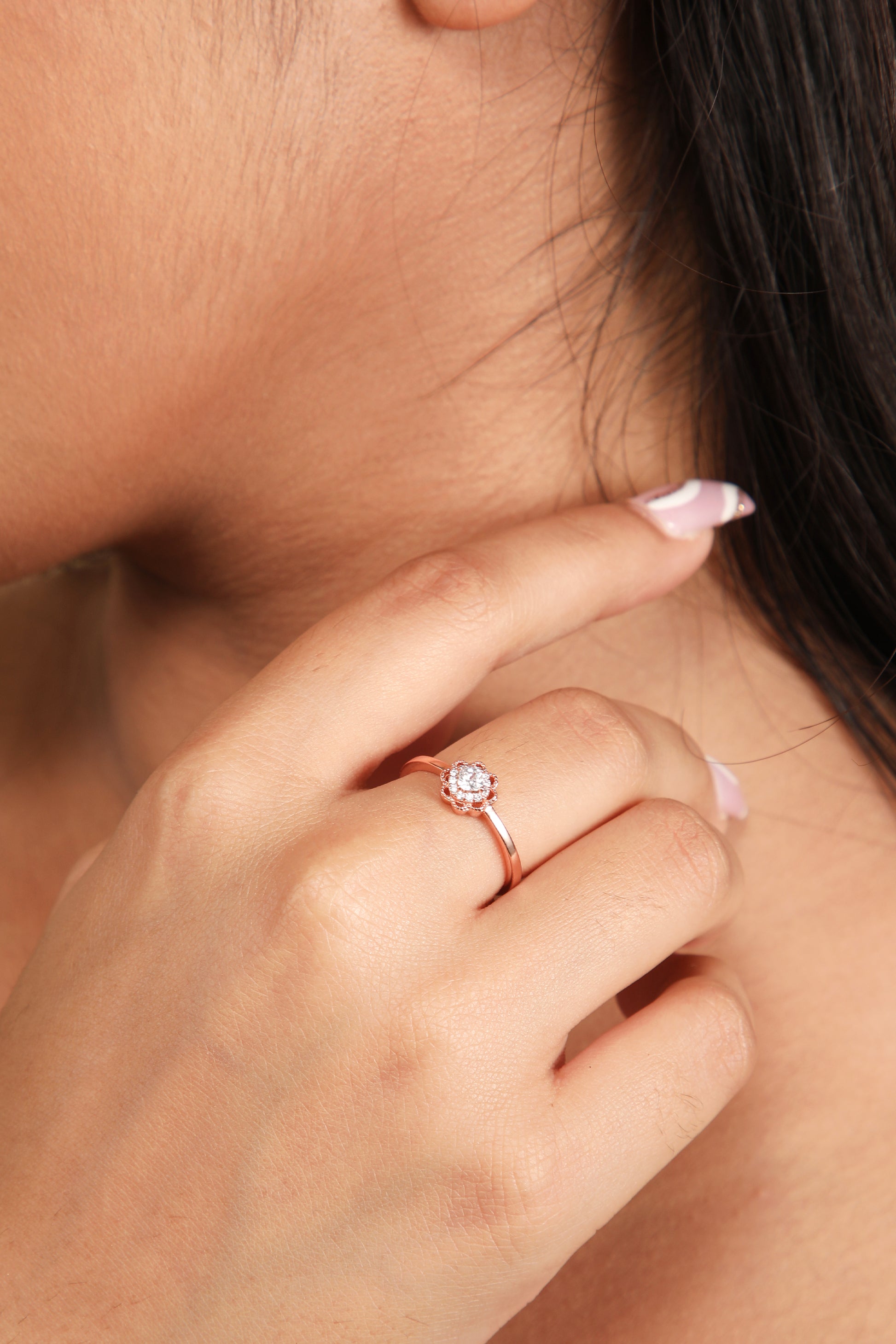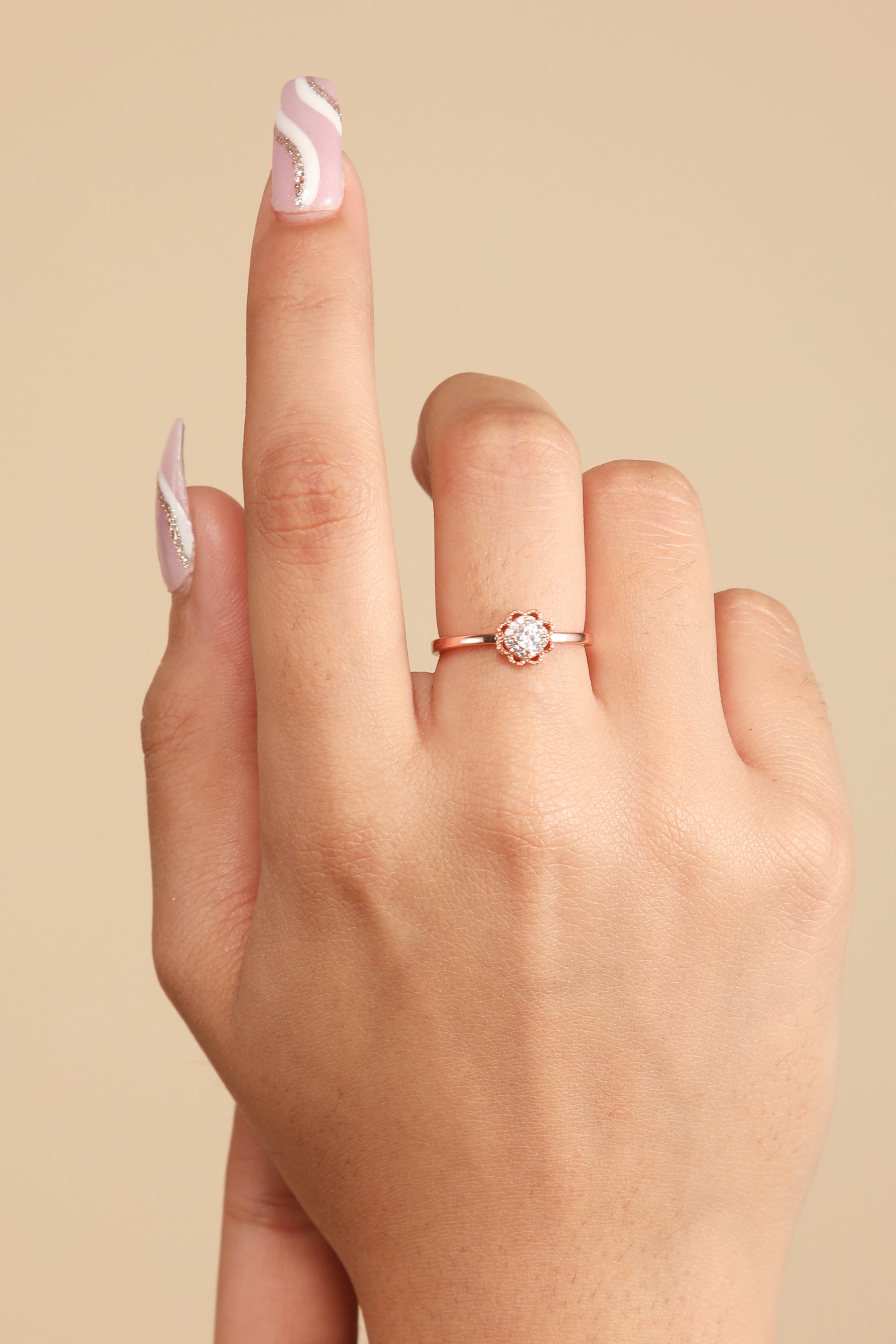 Styling Tip- Elevate your grace with the Rosé Bloom Ring in radiant rose gold. This floral masterpiece complements your romantic style effortlessly, making it perfect for date nights or any special occasion. Embrace the bloom!