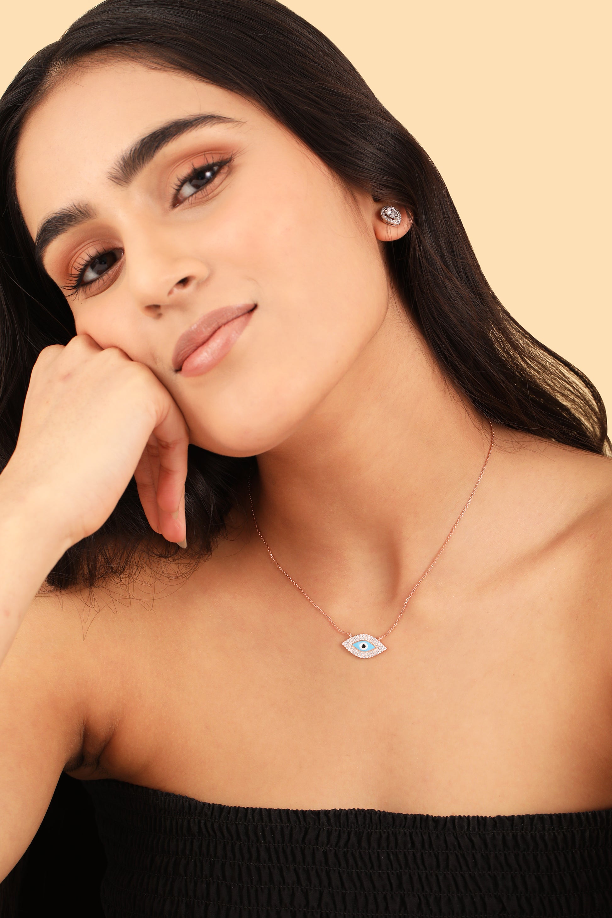 Guardian of style, our Evil Eye Pendant in radiant rose gold captivates with sterling silver allure. A symbol of protection, this accessory brings both elegance and positive vibes.