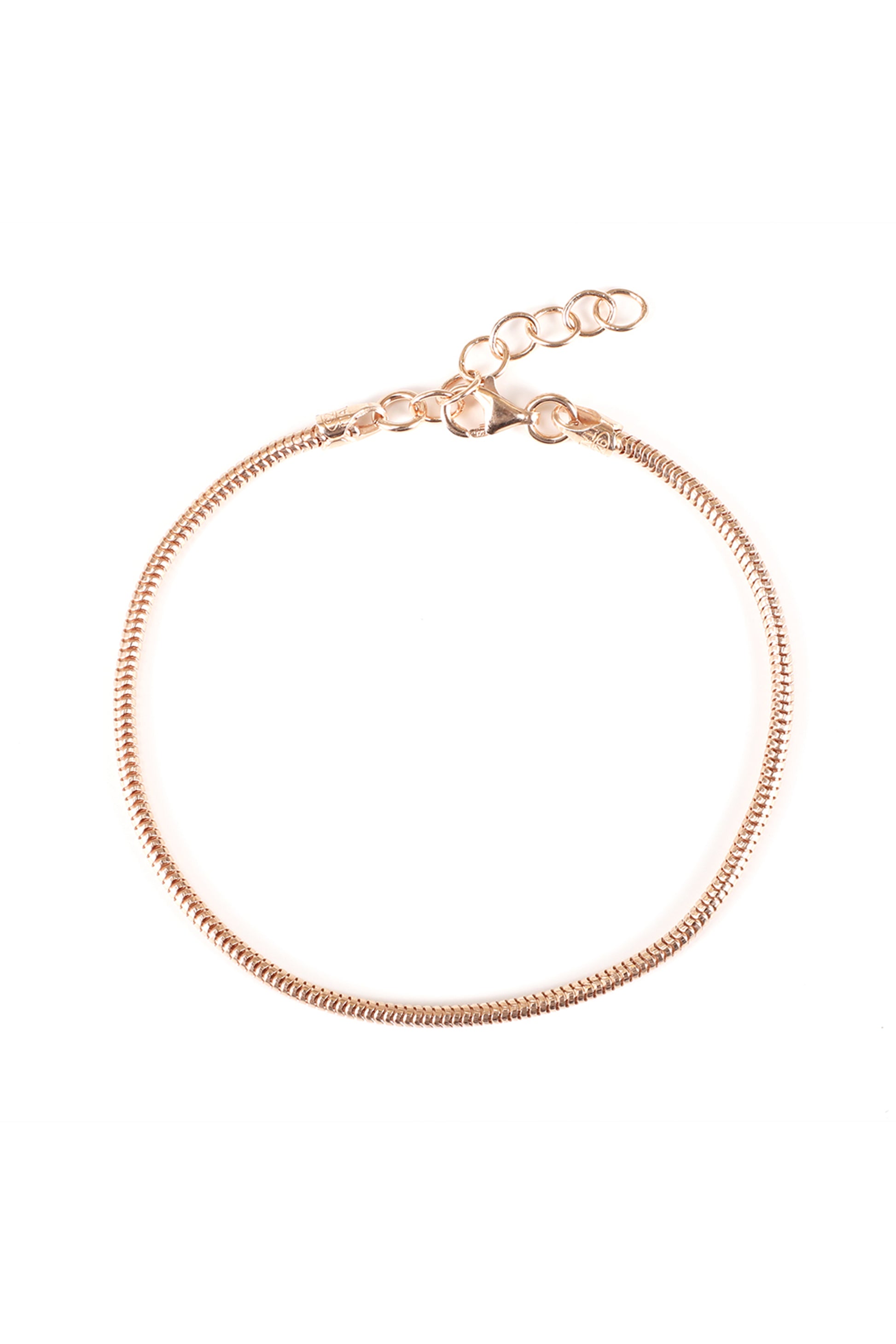 Introducing our "Rose Serpent" bracelet, a silver beauty with a captivating snake tail like chain in rose gold polish. This sleek and minimalistic piece exudes timeless charm, perfect for refined elegance.