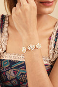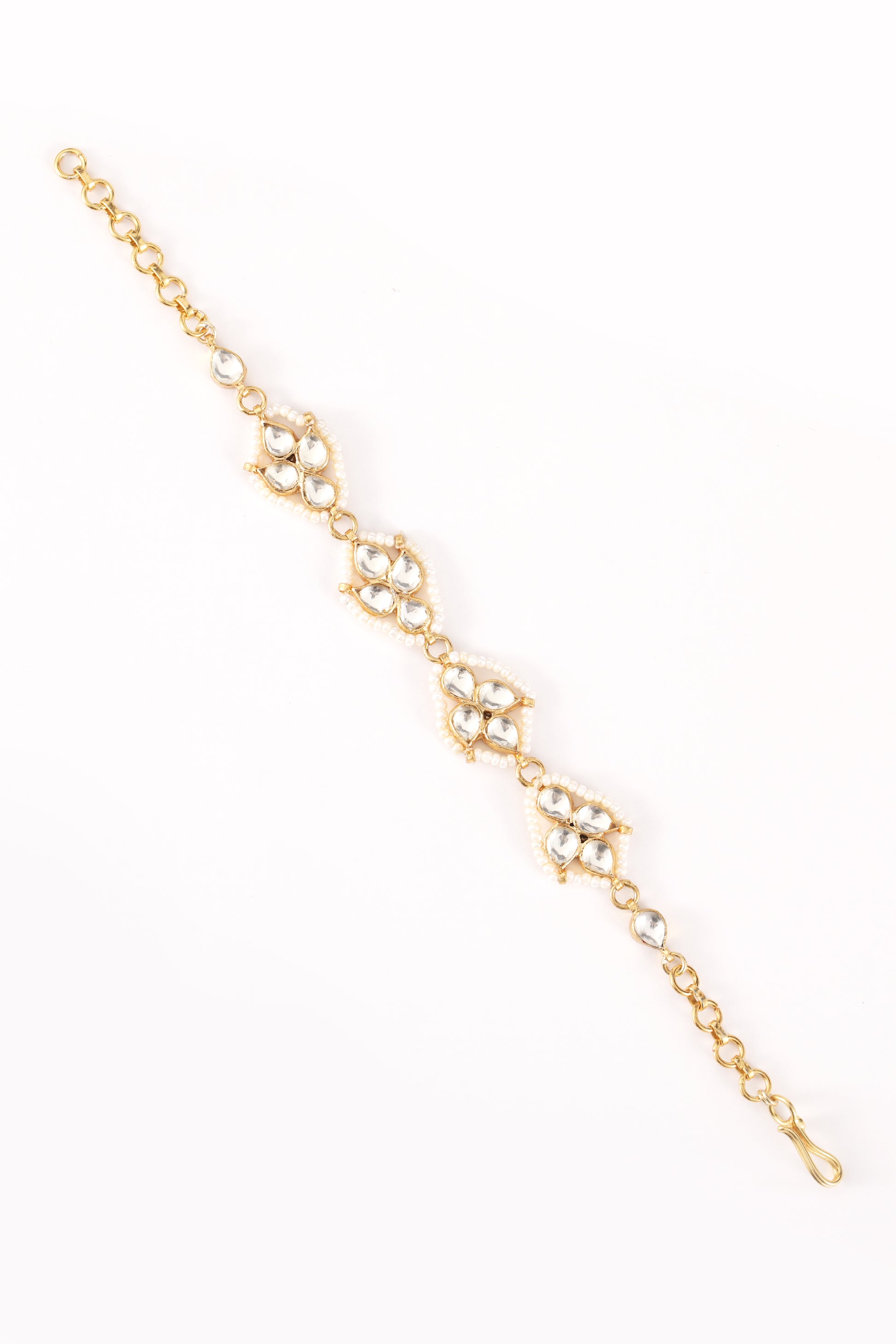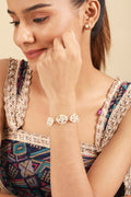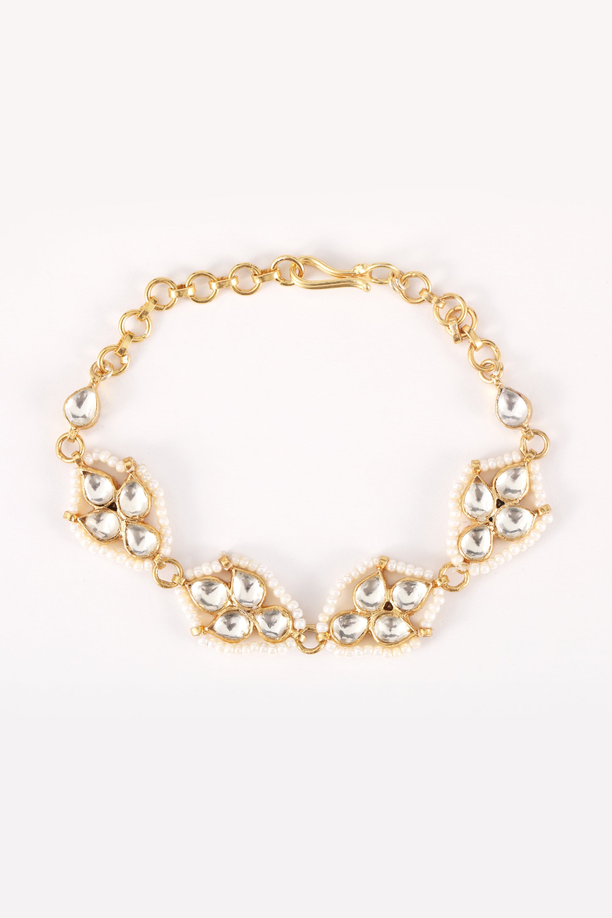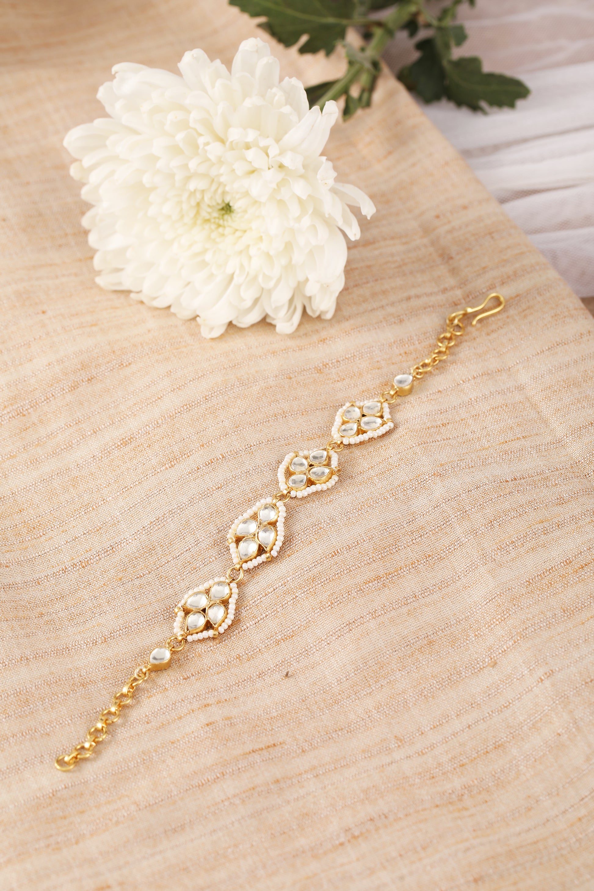 Elevate your elegance with the "Sahira Gold Bracelet." Crafted in 925 sterling silver, adorned with radiant polki charms and delicate pearl detailing, this piece beautifully embodies timeless Indian allure.