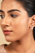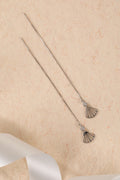Styling Tip- Pair the Silver Breeze Threader Earring with a sleek updo for a chic look, allowing the intricate fan design to subtly sway and catch the light. Effortlessly elevate any outfit with a touch of elegance.