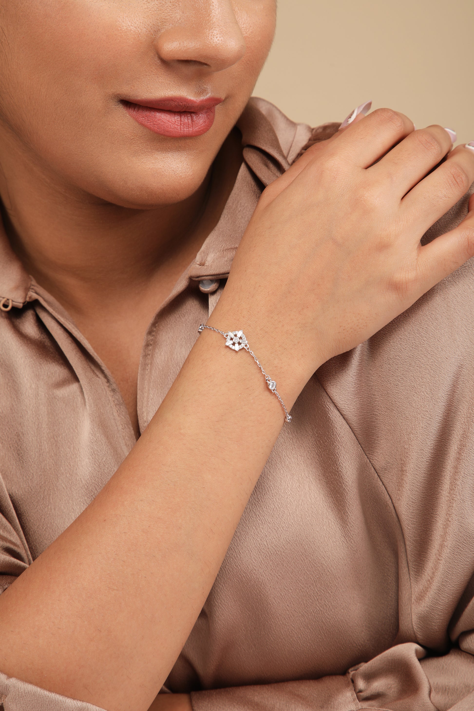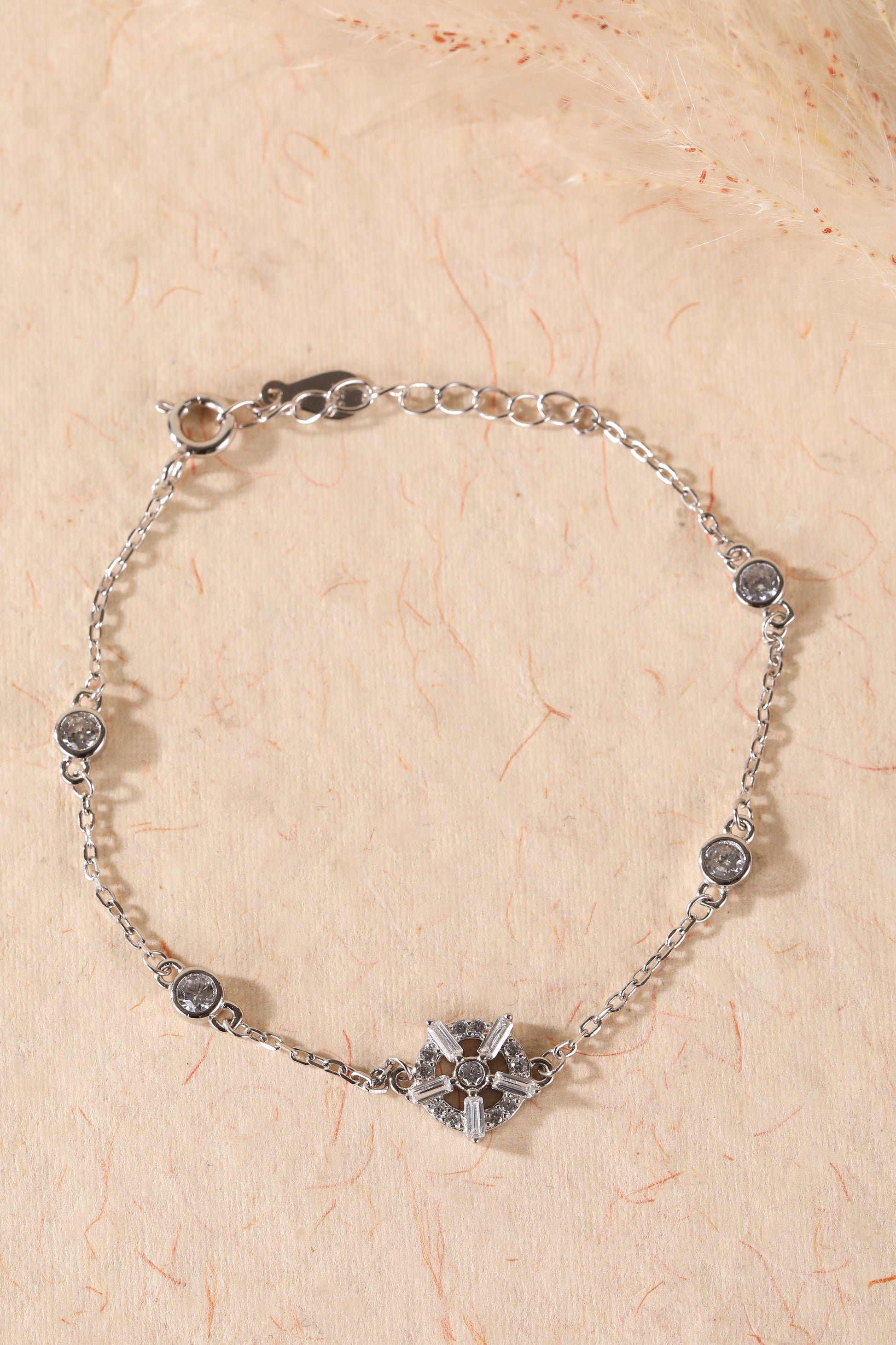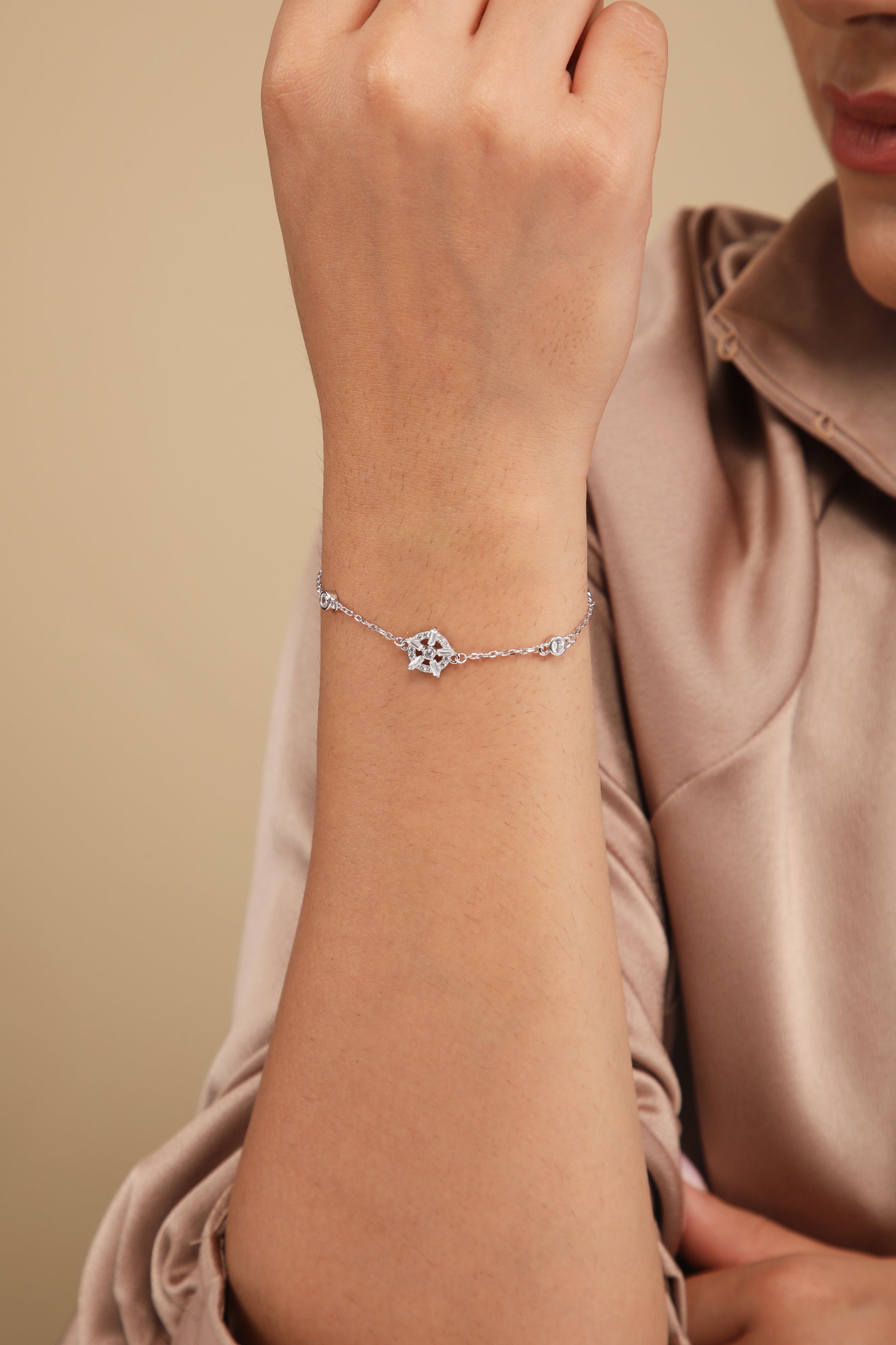 Elevate your style with the Snowflake Sparkle Silver Bracelet. It's elegant, minimalistic design features a stunning snowflake center, adding a touch of timeless beauty to any outfit. Perfect for every occasion.