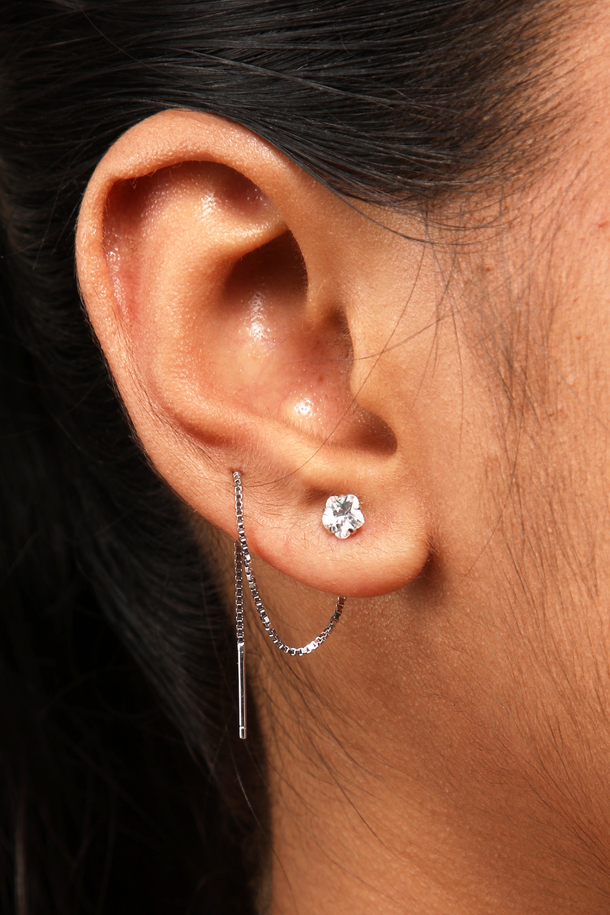 Introducing our latest Sui Dhaga threader earring with a stud, a masterpiece of minimalistic elegance in sterling silver. This versatile piece effortlessly combines contemporary style with timeless charm. Its sleek design allows for easy customization, making it perfect for any occasion.