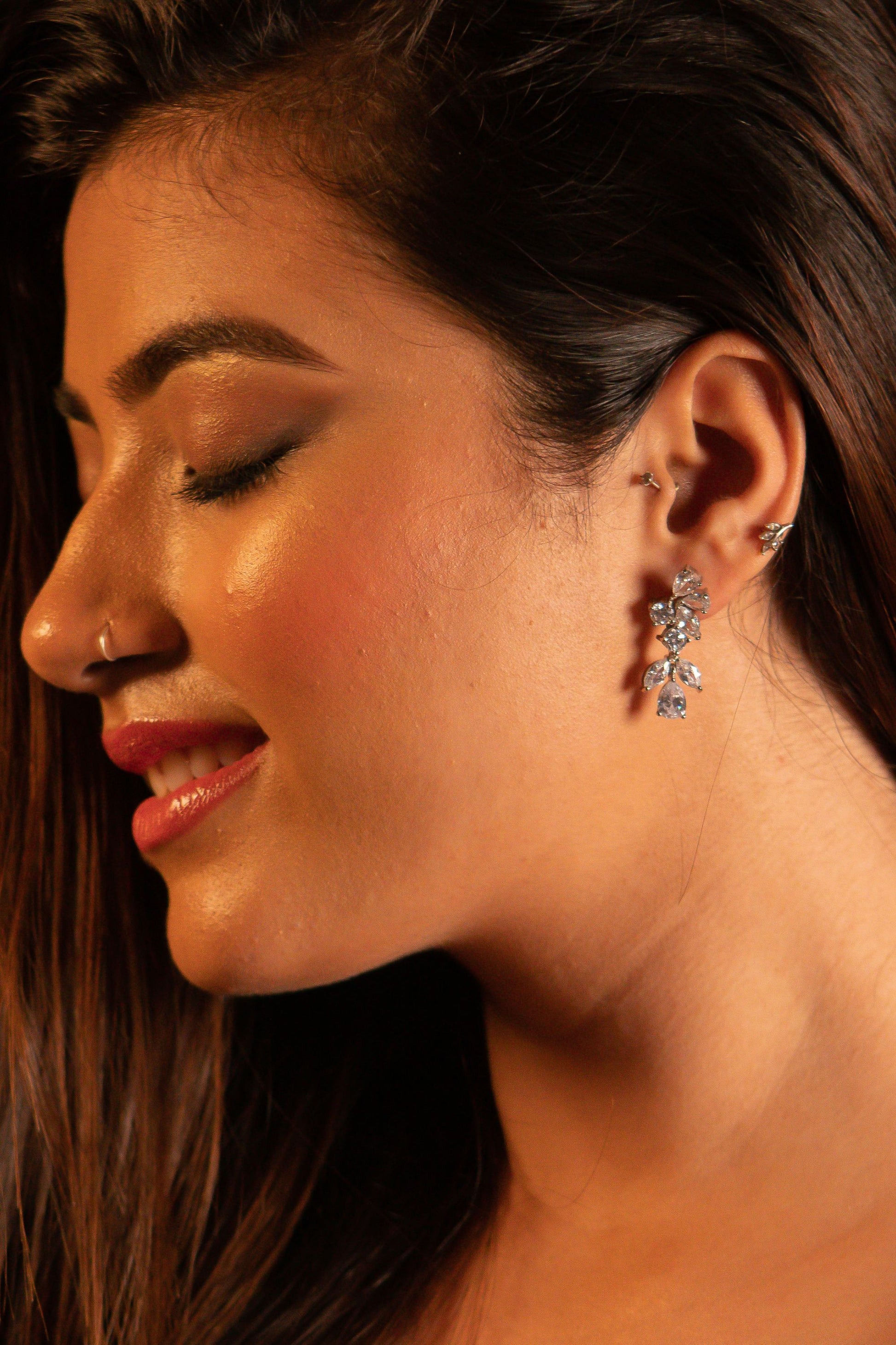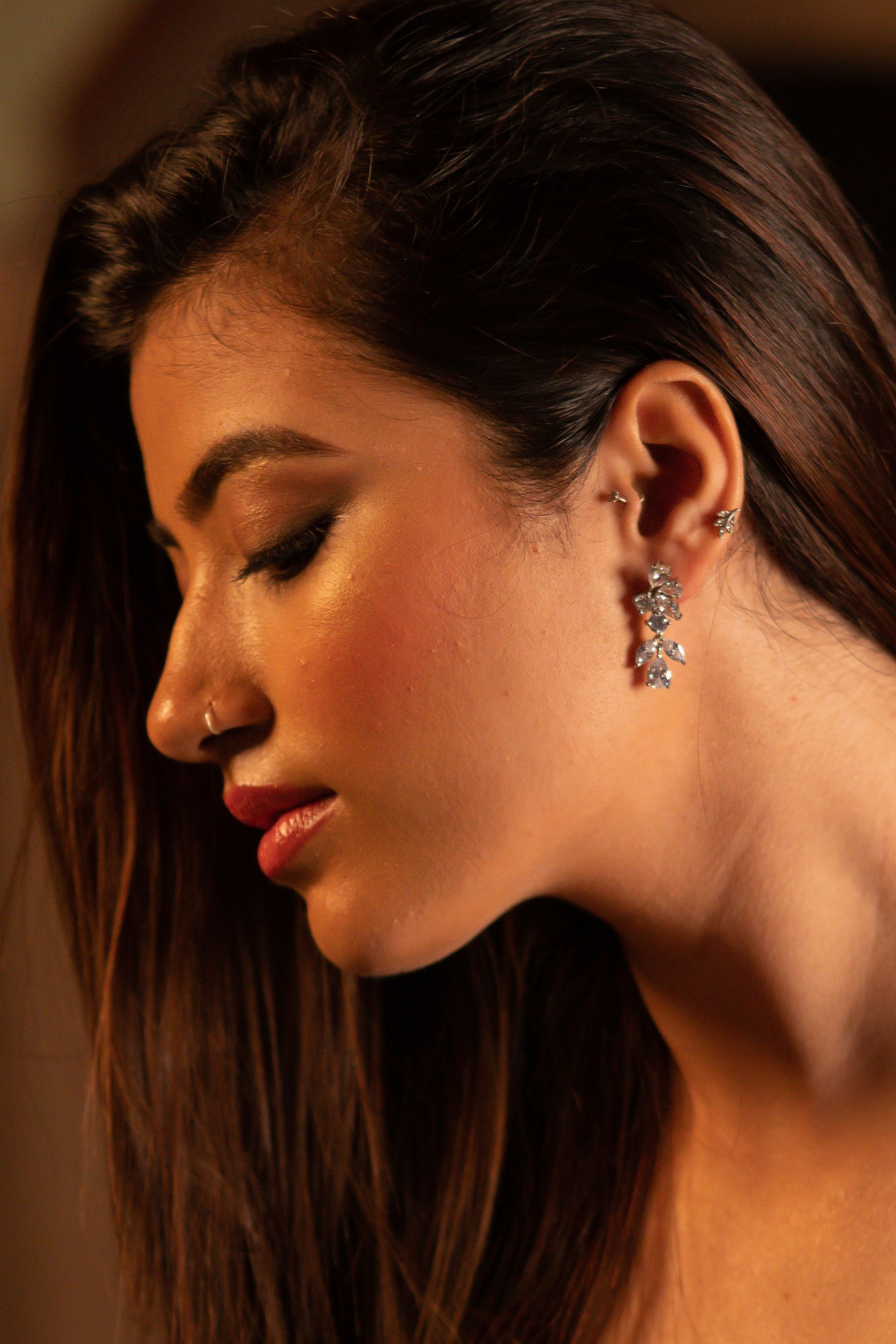 Styling Tip- Illuminate your look with our cluster crystal earrings. Ideal for both casual and formal occasions, these 925 sterling silver earrings effortlessly enhance any outfit, ensuring a dazzling and sophisticated charm.