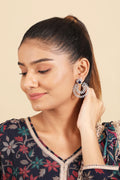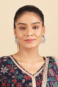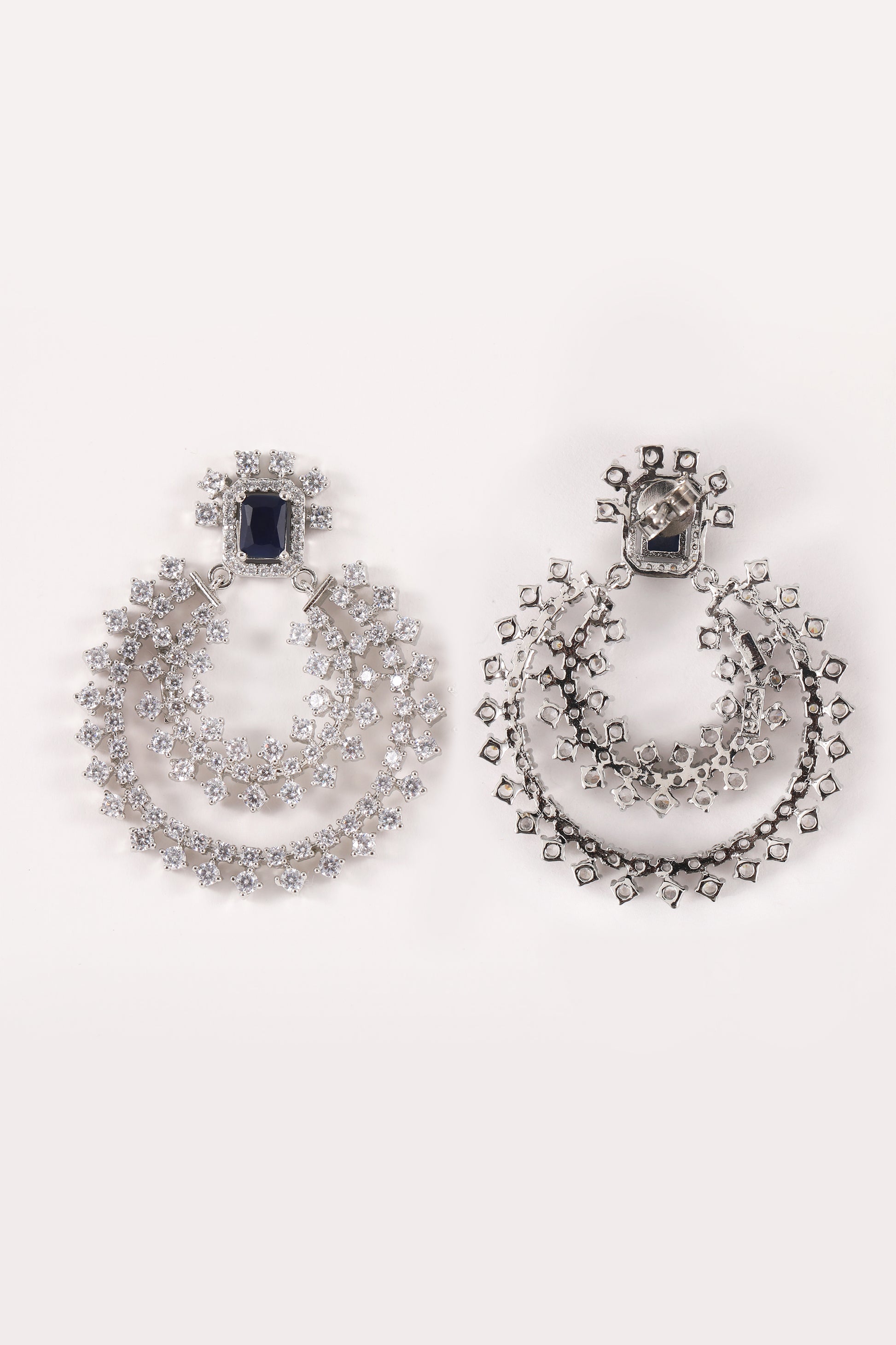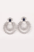 Elevate your elegance with our silver chandbali featuring intricate design and a touch of blue stone. The dual layers create a captivating look, perfect for any occasion.