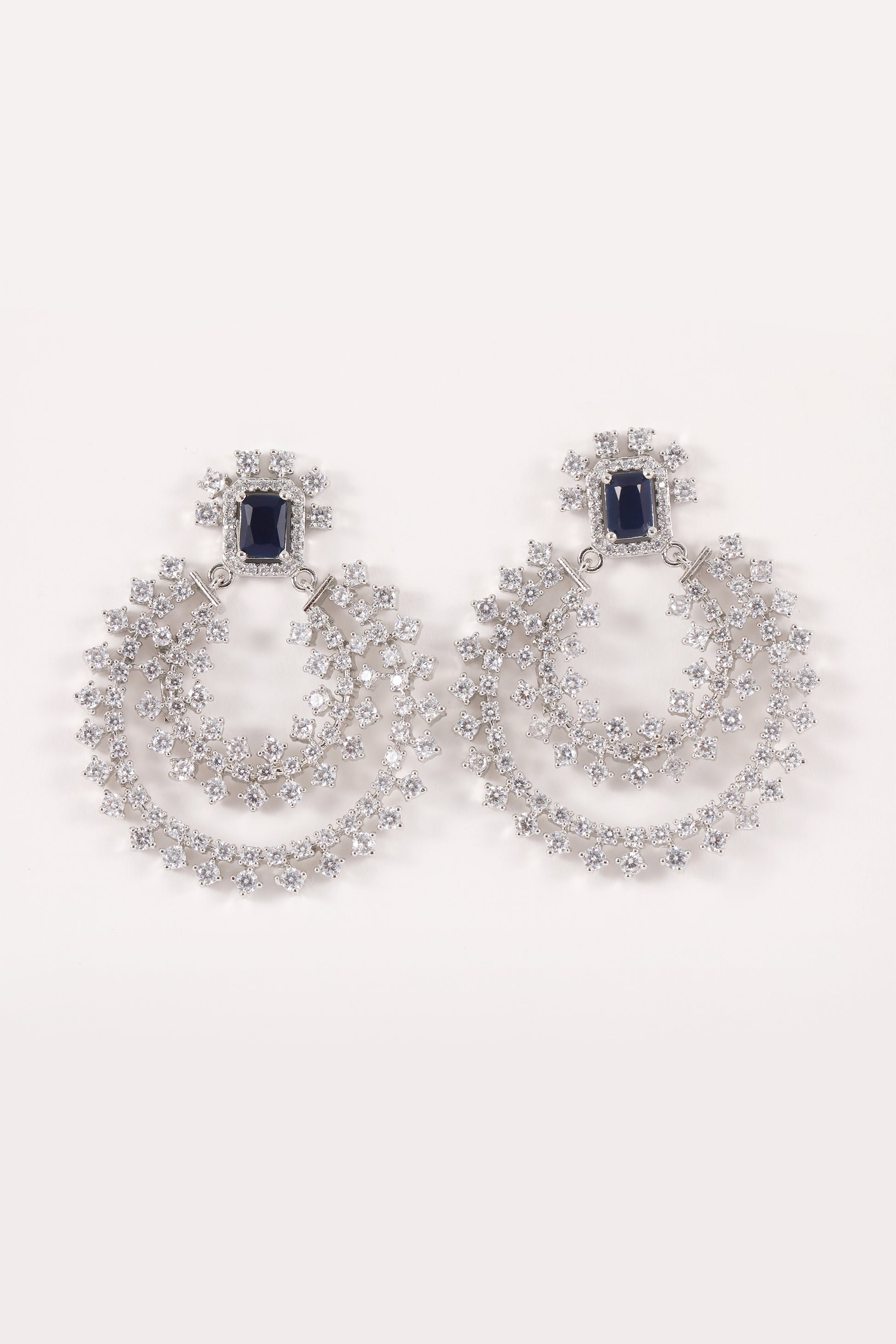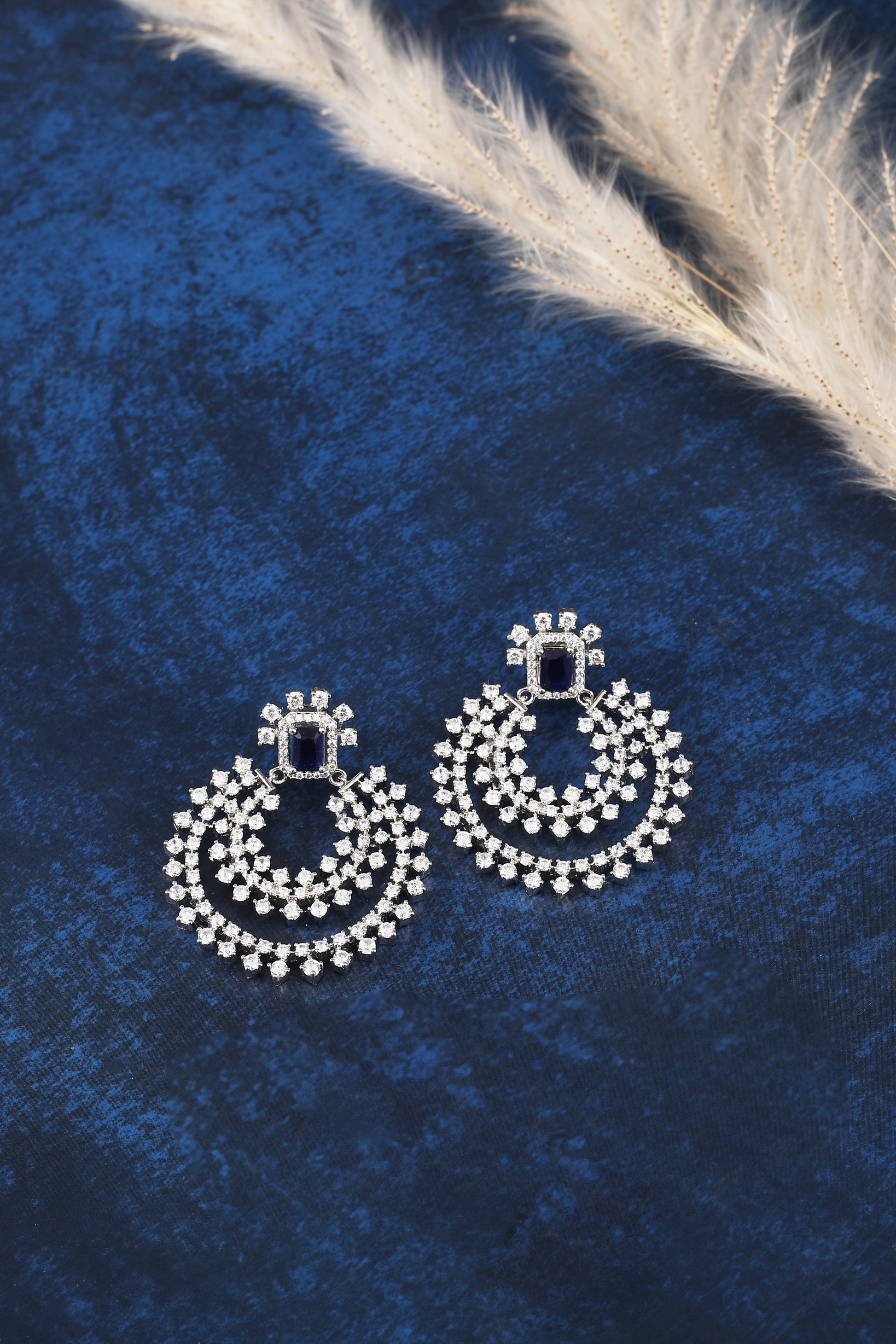 Styling Tip- Add a touch of elegance to your look with silver chandbali earrings featuring a subtle blue stone. Ideal for both ethnic and contemporary wear, these earrings effortlessly elevate your style.