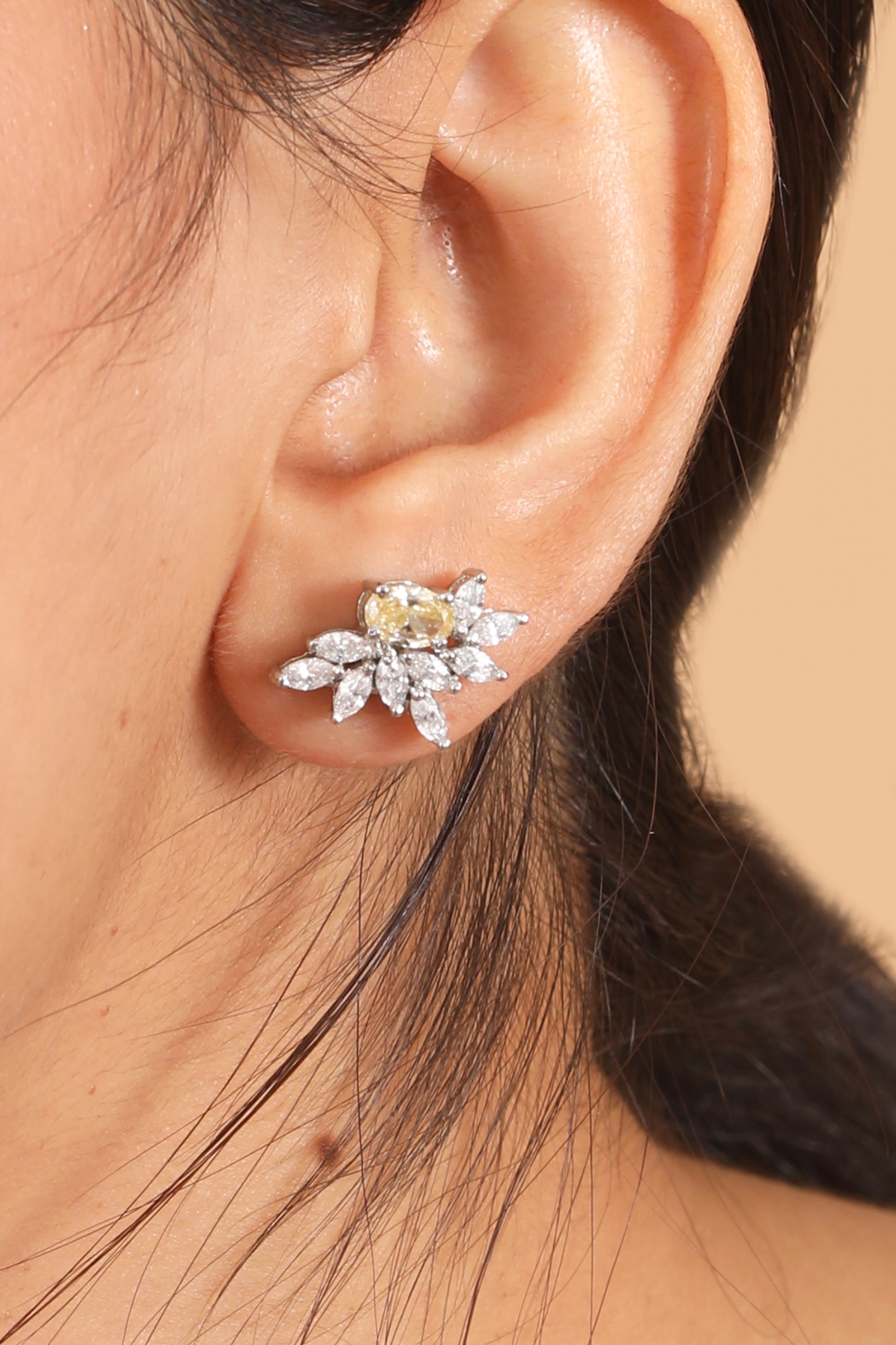 Introducing Zaria, a stunning cocktail earring crafted in sterling silver. Featuring a cluster of marquise-shaped stones and a striking amber oval stone in the corner, Zaria exudes elegance and radiance. Perfect for evening glamour, this sophisticated piece adds a touch of bold luxury to any look.
